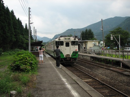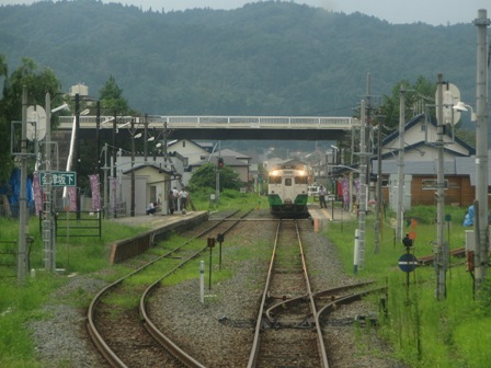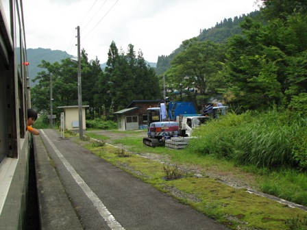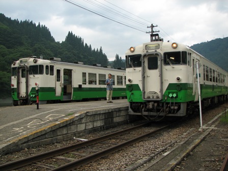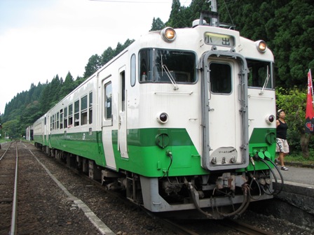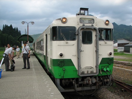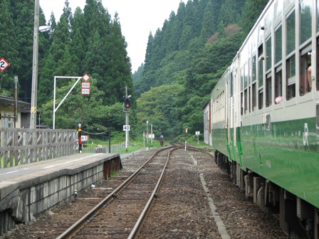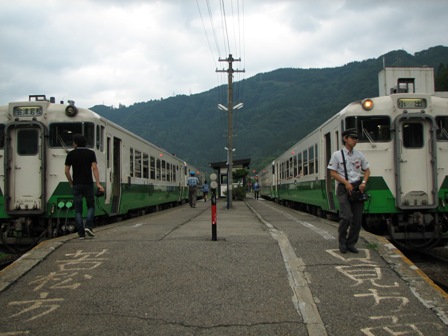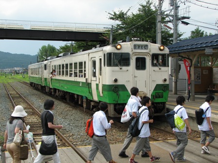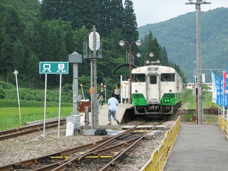 この列車は険しい山道を3時間乗り越えてこの只見という地に来たんですよ.