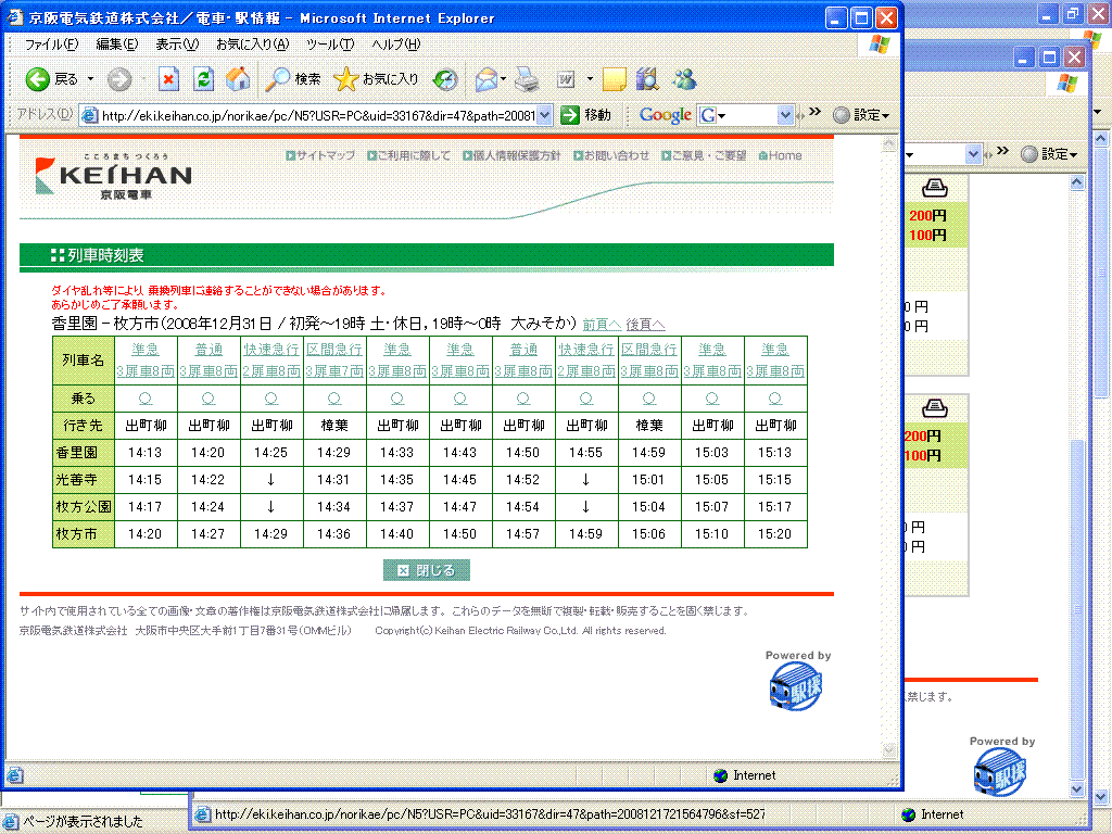 大晦日のダイヤ検索を使ったらすごいバグが出てきました